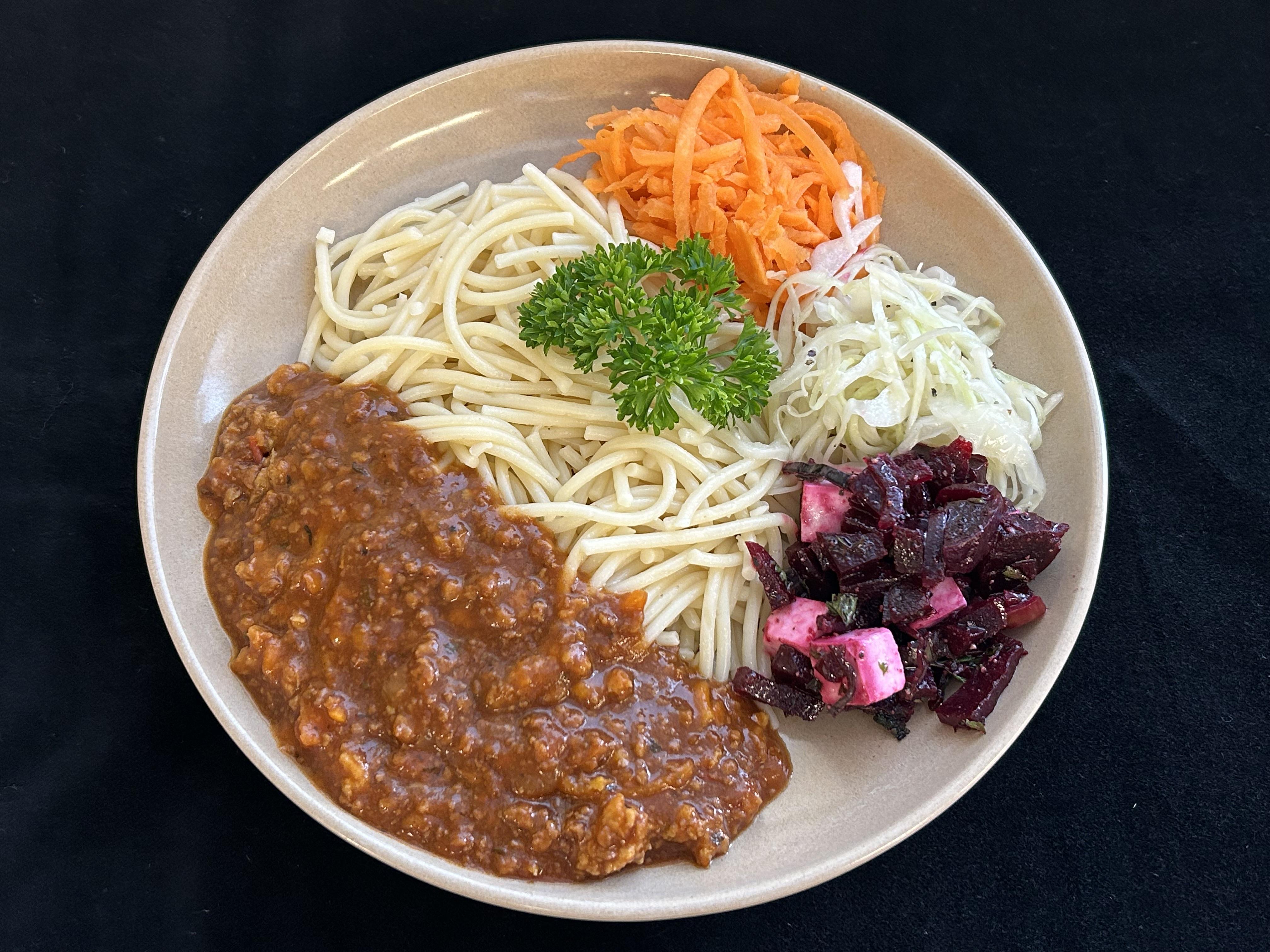 Köttfärssås (klimatsmart) serveras med spaghetti