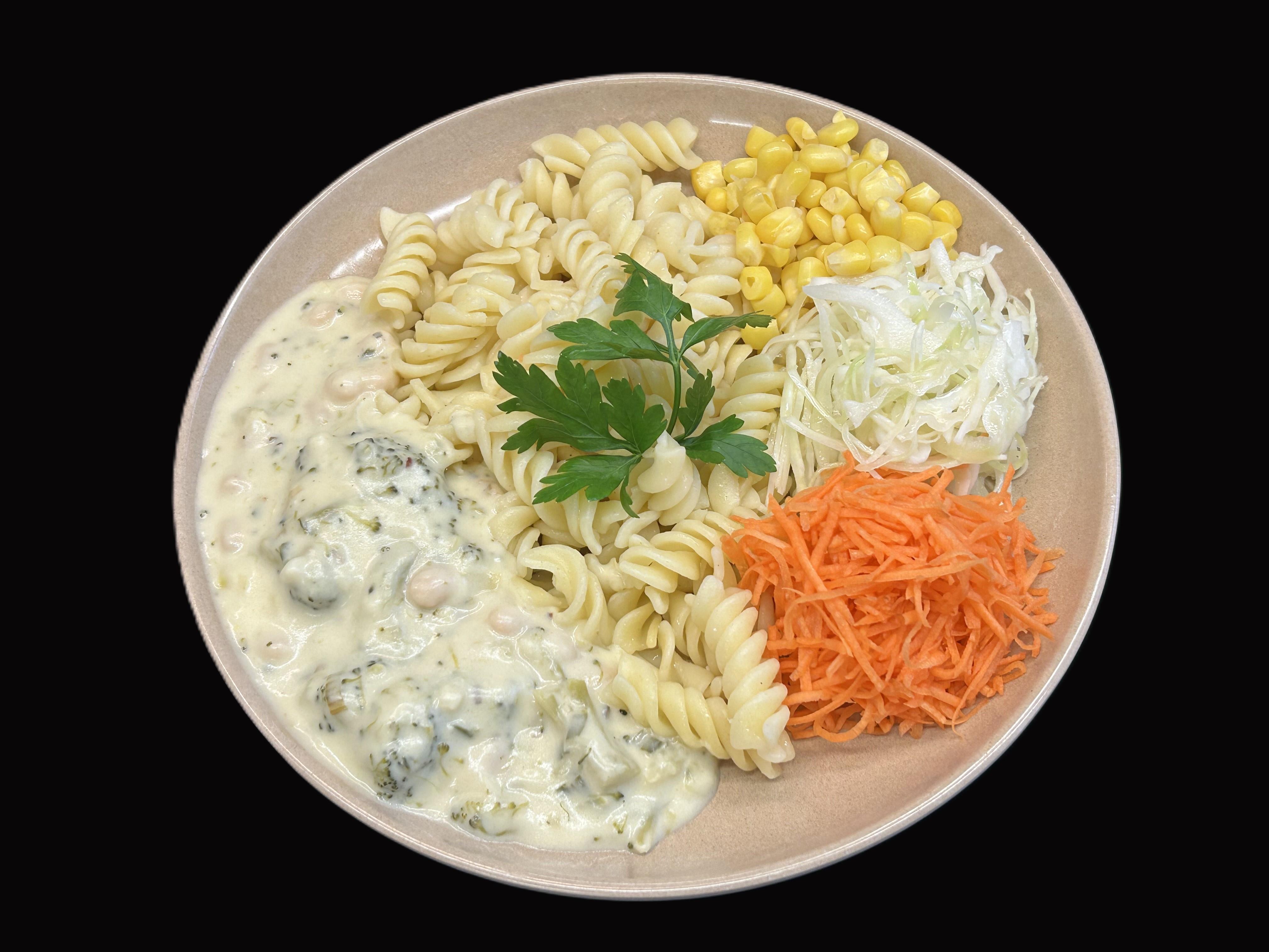 Ost- och broccolisås serveras med pasta fusilli