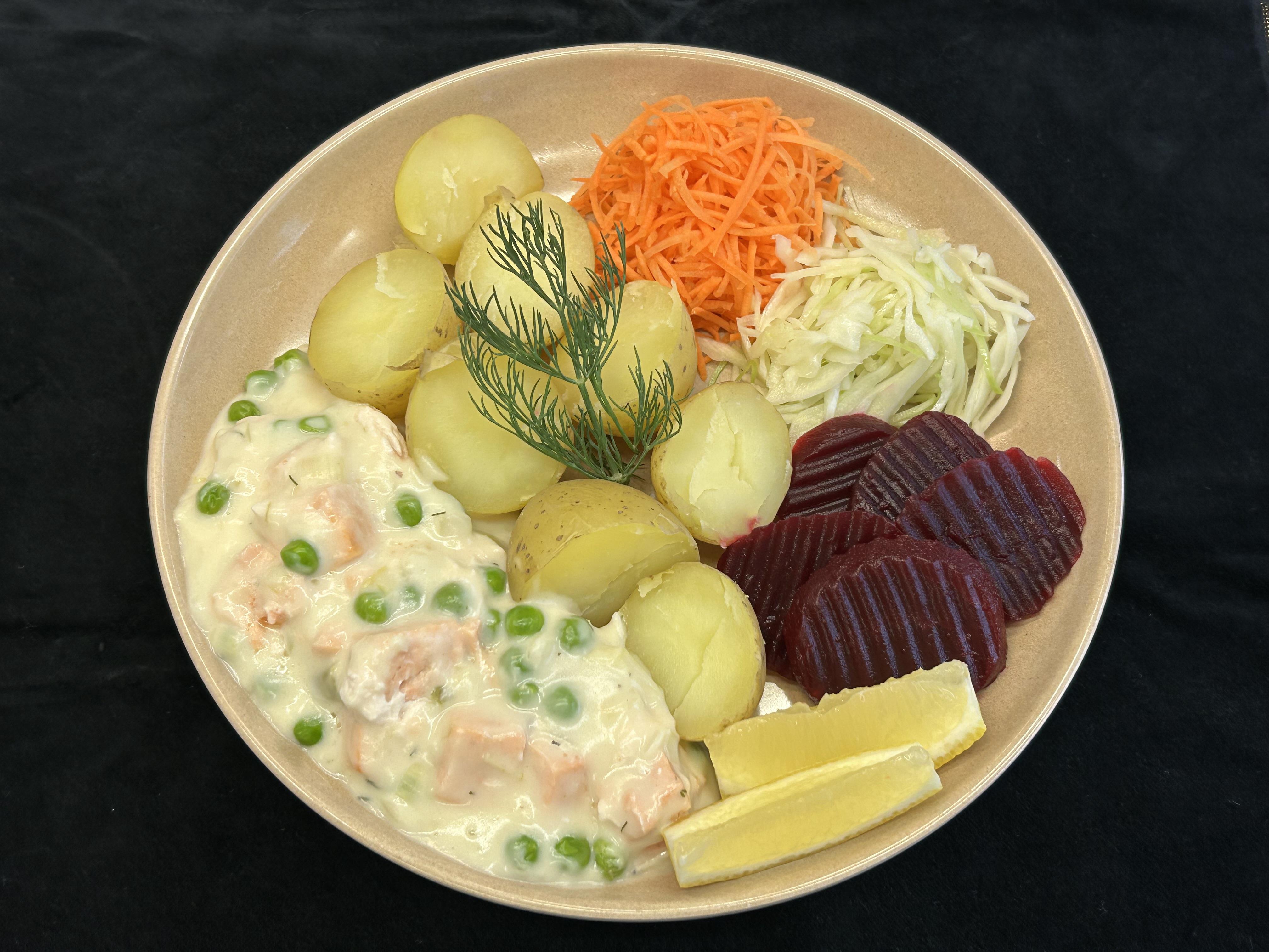 Halstrad sej serveras med varm gräslöksås samt kokt potatis